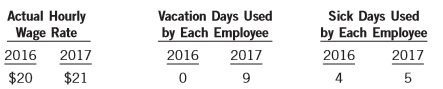 Actual Hourly Wage Rate Vacation Days Used by Each Employee Sick Days Used by Each Employee 2016 2017 2016 2017 2016 2017 $20 $21 9 4 5