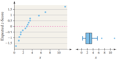 > The following data represent the pH of rain for a random sample of 12 rain dates in Tucker County, West Virginia. A normal probability plot suggests the data could come from a population that is normally distributed. A boxplot indicates there are no outl