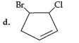 > Draw and name the product in each of the following reactions: a. Cyclopentene + H2O (H+) b. Cyclopentene + HCl c. Cyclopentene + H2 d. Cyclopentene + HI