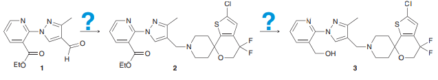 Neuroscience research has led chemists to explore compound 3 below and other related structures as potential drug candidates to treat obesity and depression. As part of this effort, compound 3 was prepared from compound 1. Show reagents that might be used to achieve the transformations shown.