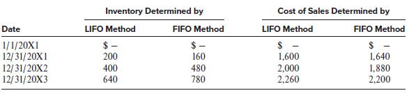 Neville Company decides at the beginning of 20X3 to adopt the FIFO method of inventory valuation. It had used the LIFO method for financial reporting since its inception on January 1, 20X1, and had maintained records that are sufficient to retrospectively apply the FIFO method. Neville concluded that the FIFO method is the preferable inventory valuation method for its inventory (it was the lone member of its industry that used LIFO; its competitors all valued inventory using FIFO). The effects of the change in accounting principle on inventory and cost of sales are presented in the following table: