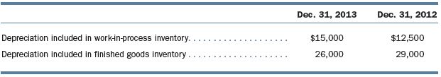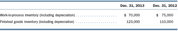 Dec. 31, 2013 Dec. 31, 2012 Work-in-process inventory (including depreciation). $ 70,000 $ 75,000 Finished goods inventory (including depreciation) 123,000 110,000 Dec. 31, 2013 Dec. 31, 2012 depreciation included in workin-process inventory. $15,000 $12,500 depreciation included in finished goods inventory. 26,000 29,000