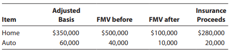 Olaf lives in the state of Minnesota. In May 2021, a tornado hit the area and damaged his home and automobile. Applicable information is as follows: