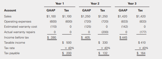 a. Compute the deferred tax expense and the balance of the deferred tax account for each year.