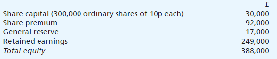 > (a) The share capital of Fogarino Ltd consists of 250,000 fully-paid ordinary (or ‘equity’) shares of 10 pence each, all of which were issued at a premium of 30 pence per share. The current market value of the company’s shares is 95 pence each. What is t