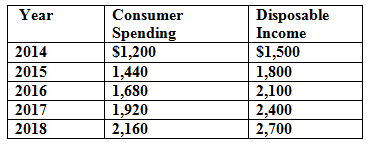 On a piece of graph paper, construct a consumption function from the data given here and determine the MPC.