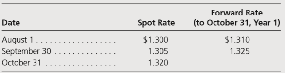 Forward Rate Date Spot Rate (to October 31, Year 1) August 1..... September 30 $1.300 $1.310 1.305 1.325 October 31 1.320