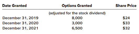 > Walters Audio Visual, Inc., offers a stock option plan to its regional managers. On January 1, 2021, 40 million options were granted for 40 million $1 par common shares. The exercise price is the market price on the grant date, $8 per share. Options cann