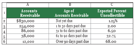 > At December 31, Hovak Co.’s Allowance for Doubtful Accounts has an unadjusted debit balance of $3,400. Hovak prepares a schedule of its December 31 accounts receivable by age. Required 1. Compute the required balance of the Allowance fo
