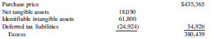 Purchase price Net tangible assets Identifiable intangible assets $435,365 18030 61,800 Defermed tax liabilitics (24,924) 54,926 380,439 Excess
