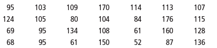 > (a) Make a stem-and-leaf plot for these 24 observations on the number of customers who used a downtown CitiBank ATM during the noon hour on 24 consecutive workdays. (b) Make a dot plot of the ATM data. (c) Describe these two displays. (Hint: Refer to cen