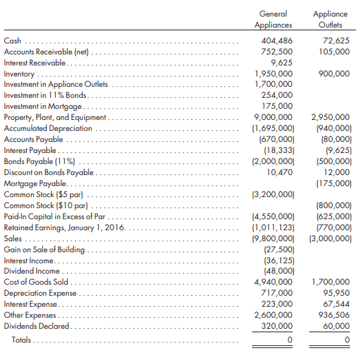 The trial balances of the two companies at December 31, 2016, were as follows: