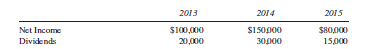 Fair Value in Exces of Book Value Inventory Equipment (net) $45,000 S0,000 2013 2014 2015 Net Income $100,000 S1s0p00 $80,000 Dividends 20,(000 30000 15,000