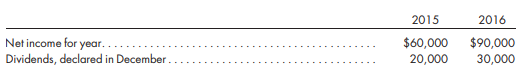 Net income and dividends for two years for Craft Company are as follows: