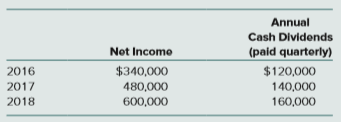 Annual Cash Dividends Not Income (paid quarterly) 2016 $340,000 $120,000 2017 480,000 600,000 140,000 160,000 2018