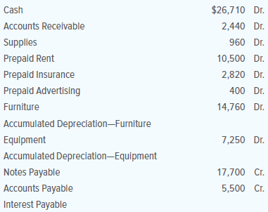 1. Prepare a partial worksheet with the following sections: Trial Balance, Adjustments, and Adjusted Trial Balance. Use the data about the firmâs accounts and balances to complete the Trial Balance section.
