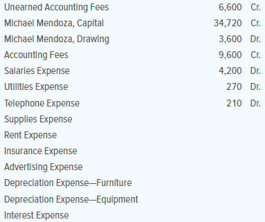 On July 31, 20X1, after one month of operation, the general ledger of Michael Mendoza, CPA, contained the accounts and balances given below.