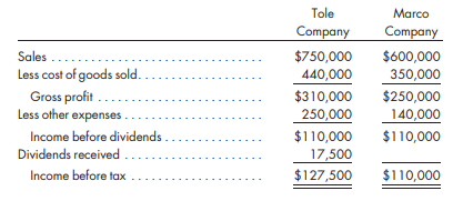 Tole Company and Marco Company have the following separate income statements for the year ended December 31, 2018: