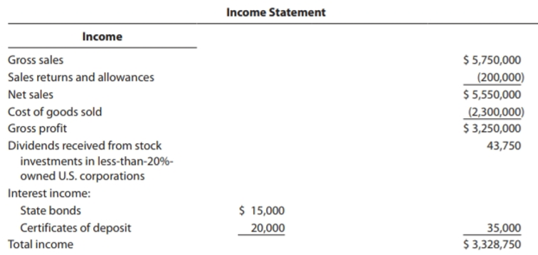 > In the current year, Acorn, Inc., had the following items of income and expense: The dividends were received from a corporation of which Acorn owns 30%. In Acorn's current-year corporate income tax return, what amount should be reported as income befor