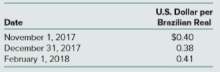 U.S. Dollar per Date Brazilian Real November 1, 2017 December 31, 2017 February 1, 2018 $0.40 0.38 0.41