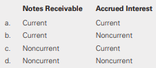 On November 30, Year 1, Derin Corporation agreed with its customers to change accounts receivable to notes receivable in order to allow a longer payment period. The terms of the noteâs receivable are that the principal is due on November 30, Year 4, and the interest payments are due annually on November 30 until November 30, Year 4. Derinâs customer has made all required payments to date. How should the notes receivable and accrued interest be classified on the balance sheet as of June 30, Year 3?