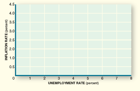 On the following graph, plot the unemployment and inflation rates for the years 2000â2010 using the data from this bookâs end covers. Is there any evidence of a Phillips curve trade-off?