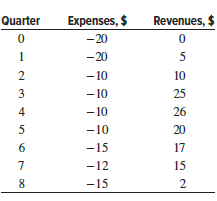 (a) Apply the rule of signs to determine the maximum number of possible i* values at aMARR of 5% per quarter.