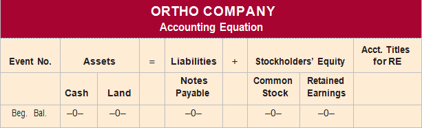 a. Record the transactions in an accounting equation like the equation shown next. Record the amounts of revenue, expense, and dividends in the Retained Earnings column. Provide the appropriate titles for these accounts in the last column of the table. Show the totals at the end of Year 1 and use these totals as the beginning balances for the second accounting cycle.