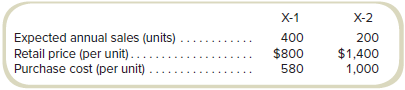 The owners are working on a business plan that the bank has requested. The store would sell only two models of kites initially, the X-1 and the X-2. Data on the kites is given as follows: