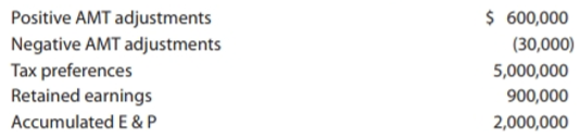 Positive AMT adjustments $ 600,000 (30,000) Negative AMT adjustments Tax preferences Retained earnings 5,000,000 900,000 Accumulated E & P 2,000,000