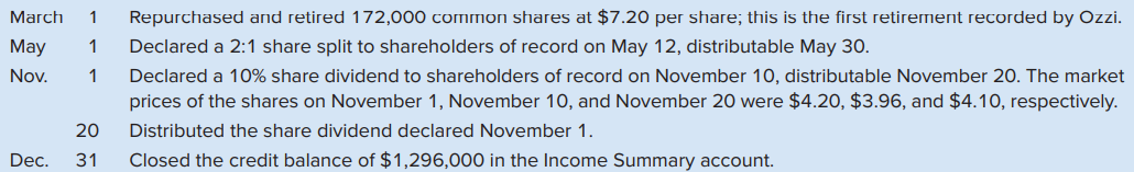 Ozzi Development Inc. showed the following equity account balances on the December 31, 2019, balance sheet: