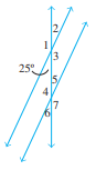 > Parallel lines are cut by the transversal shown. Determine the measures of