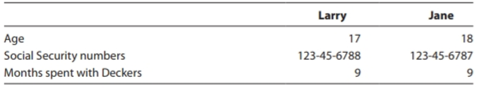 Donna is the custodial parent of two children from a previous marriage who reside with the Deckers through the school year. The children, Larry and Jane Parker, reside with their father, Bob, during the summer. Relevant information for the children follows: