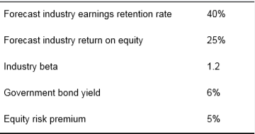 a. Compute the price-to-earnings (P0/E1) ratio for the industry based on this fundamental data.