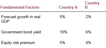 b. Jones wants to analyze how fundamental P/E ratios might differ among countries. He gathered the following economic and market data: