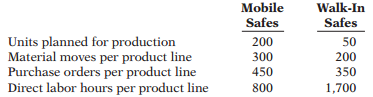 Mobile Walk-In Safes Safes Units planned for production Material moves per product line Purchase orders per product line Direct labor hours per product line 200 50 300 200 450 350 800 1,700