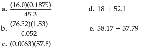 (16.0)(0.1879) а. d. 18 + 52.1 45.3 (76.32)(1.53) b. e. 58.17 – 57.79 0.052 (0.0063)(57.8) с.