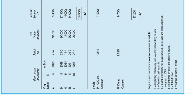 Phung, CPA, has been engaged to audit the financial statements of Vernon Distributors, Inc., a continuing audit client, for the year ended September 30. After obtaining an understanding of Vernonâs internal control system, Phung set control risk at the maximum level for all financial statement assertions concerning investments. Phung determined that Vernon is unable to exercise significant influence over any investee and none are related parties. Phung obtained from Vernon detailed analyses of its investments in domestic securities showing