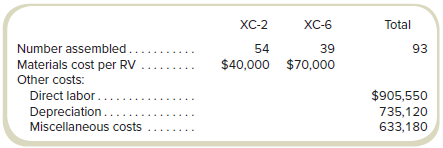 Piper Recreational Vehicles (PRV) modifies vans into recreational vehicles. PRV offers two models, the XC-2 and XC-6, which differ in the quality of the basic van and the workmanship and machining detail that are used. The following data reflect expected operations for the next year.