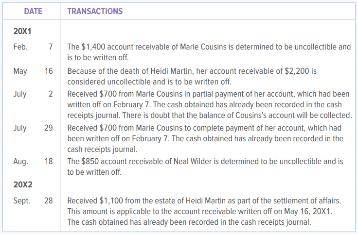 Pittman Company records uncollectible accounts expense as they occur. Selected transactions for 20X1 and 20X2 are described below. The accounts involved in these transactions are Notes Receivable, Accounts Receivable, and Uncollectible Accounts Expense. Record each transaction in general journal form.