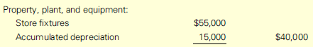 Property, plant, and equipment: Store fixtures $55,000 Accumulated depreciation 15,000 $40,000