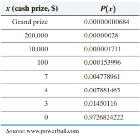 Powerball is a multistate lottery. The following probability distribution represents the cash prizes of Powerball with their corresponding probabilities.