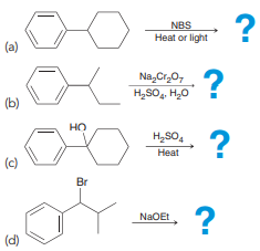 NBS Heat or light ? (a) Na, Cr,0, H,SO, H20 (b) HO ? H2SO4 Heat (c) Br ? NaOEt (d)