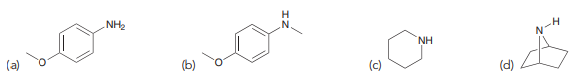 > For each of the following pairs of compounds, identify which compound is the stronger base: N- (a) (b) (c) (d)