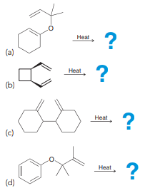 > Predict the major product(s) for each of the following thermal electrocyclic reactions: . ? . ? ? Heat Heat Heat (a)