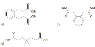 > Predict the major product obtained when each of the following compounds undergoes a Claisen condensation: OEt OMe (a) (b) OEt (c)