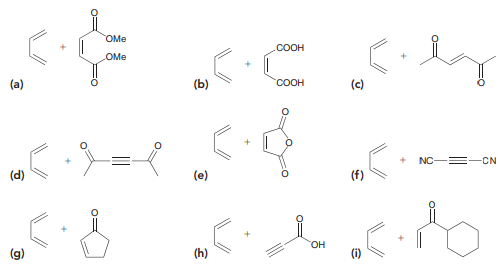 > Rank the following dienes in terms of reactivity in Diels– Alder reactions (from least reactive to most reactive):