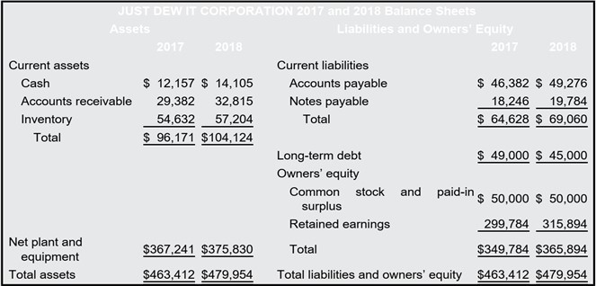 > Consider the following abbreviated financial statements for Parrothead Enterprises:a. What is owners’ equity for 2017 and 2018?b. What is the change in net working capital for 2018?c. In 2018, Parrothead Enterprises purchased $2,496 in