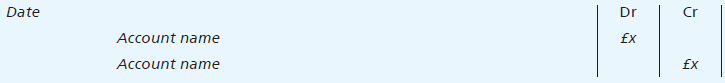 Prepare the double entries (not the T accounts) for the following transactions using the format: