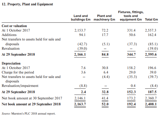 Presented below are excerpts from the 2018 annual report of Marstonâs PLC, a UK-based company that operates pubs.